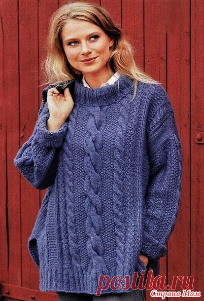 Свитер с разрезами и узором из кос. Спицы. - ВЯЗАНАЯ МОДА+ ДЛЯ НЕМОДЕЛЬНЫХ ДАМ - Страна Мам