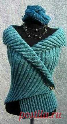 Связан жилет на спицах № 3. Узор - резинка. Как посоветовали читатели, резинку следует сделать более крепкой, чем на шарф, например: узор резинка 3х3 из лиц. и изн. петель и жёсткие нитки, чтобы ворот красиво лежал.