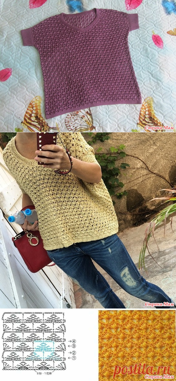 Летняя маечка крючком с ажурной планкой - Онлайн-журнал о вязании и кулинарии