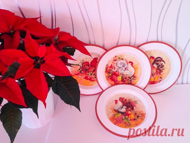 Петушки, набор из 4-x тарелочек - комбинированный, тарелки ручной работы, панно настенные, панно на стену, панно декоративные, декор для интерьера, из газетных трубочек, декор для дома, декор стен, тарелки настенные, плетение из газет, плетение из бумажной лозы