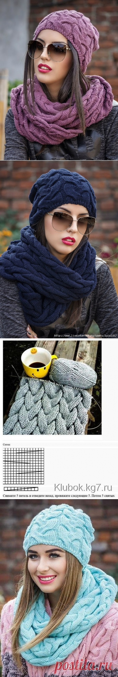 Шапка с помпоном "Романтическое настроение" вязаная спицами Зимняя мода 2014-2015 уделяет повышенное внимание вязаным головным уборам. Всякие шапки-береты, оказывается, сейчас весьма востребованы, особенно с крупной рельефной вязкой. Приветствуются все ухищрения, которые увеличивают объём изделия, в том числе косы, жгуты и подобные крупные узоры.