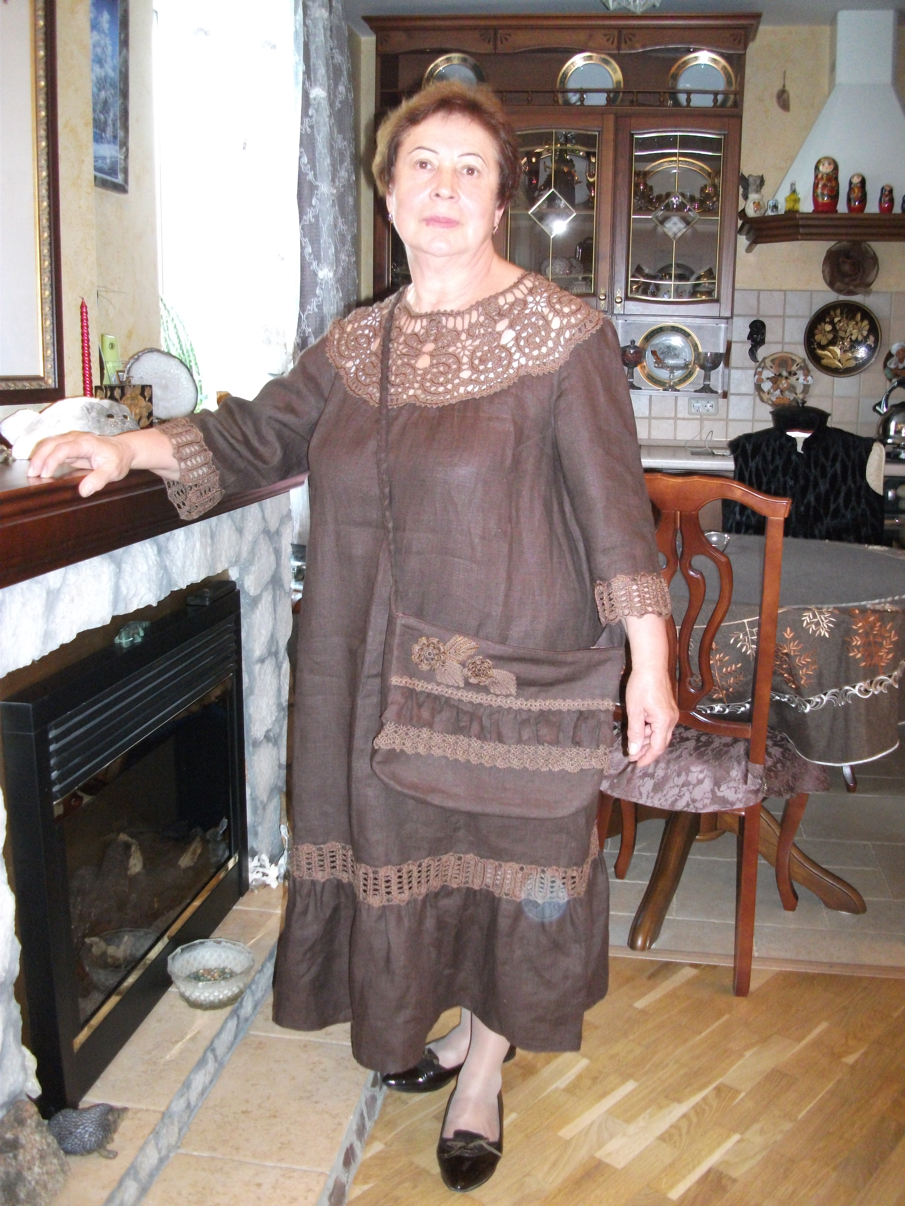 комплект платье + сумка из льняной ткани и ручного кружева брюгге