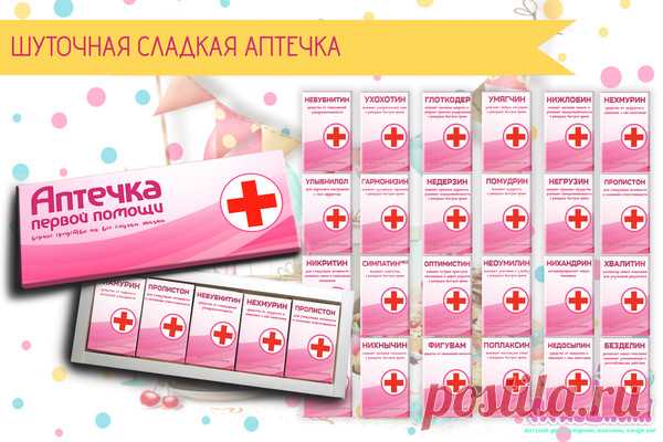 Шуточная сладкая аптечка ЖЕНСКАЯ (Сладкая аптечка) Сладкая помощь шаблоны Распечатай к празднику (бесплатно) Каталог статей