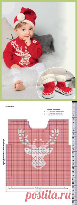 Озорные петельки: Пуловер с оленями. Башмачки. Шапка.