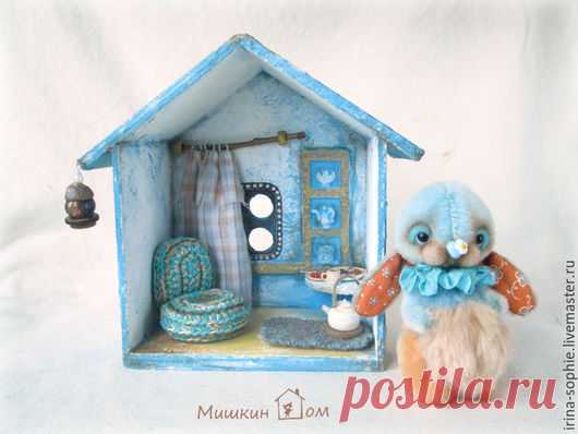 Купить Мишкин дом. Миниатюра - дом, домик, домашние тапочки, домашний уют, домик для тедди