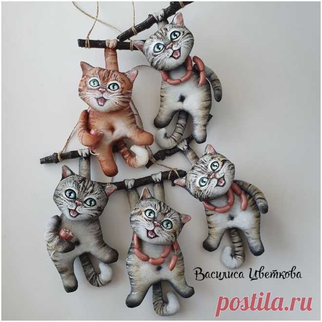Котики с сосисками и колбасой #кот #котик #мурзик #текстильнаягрушка #грунтованныйтекстиль #ручнаяработа #хендмейд
