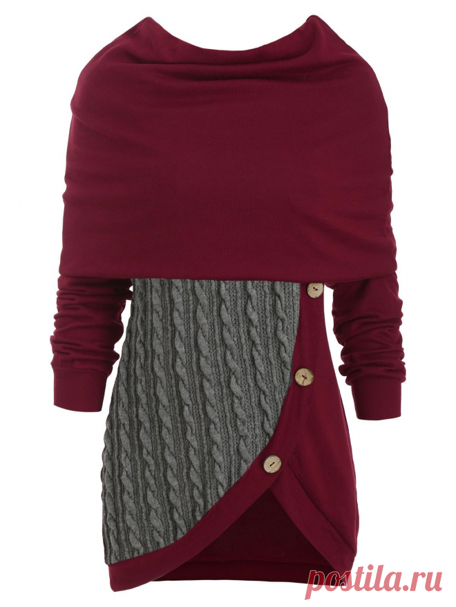 [44% OFF] 2019 Cowl Neck Mock Button Cable Knit Knitwear In GRAY CLOUD | DressLily