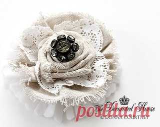 Текстильная брошь — цветок с кружевом