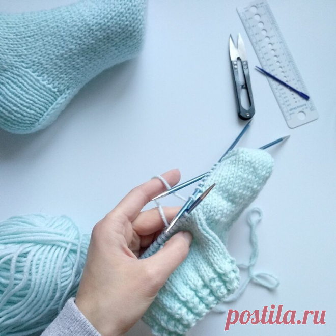 Двойная шапочка с помпоном (Вязание спицами) — Журнал Вдохновение Рукодельницы