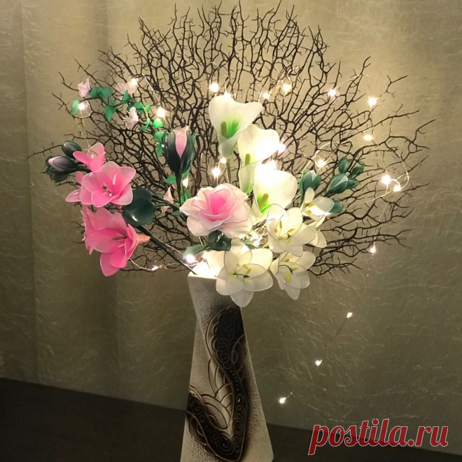 Купить Ночник. Интерьерная композиция из искусственных цветов в интернет-магазине на Ярмарке Мастеров, цена: 3500 ₽. Товары ручной работы с доставкой по России и СНГ. ✓Описание, фото ✓Отзывы реальных покупателей