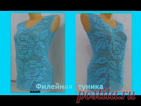 Филейная туника "Нежная бирюза", вязание крючком ,crochet tunic (В № 129)