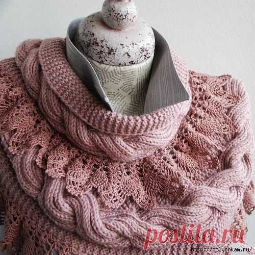 Пуловер с воротником-шаль.Спицы Ажурный пуловер с воротником-шаль. Спицы. Описание, схемы вязания, выкройка Размер 42.
