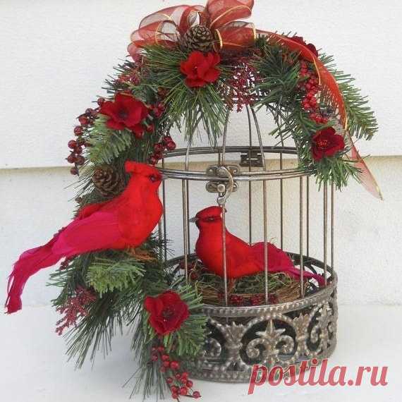 Новогодняя композиция с птичкой❄🐦🎄 🎅. Мастер-класс