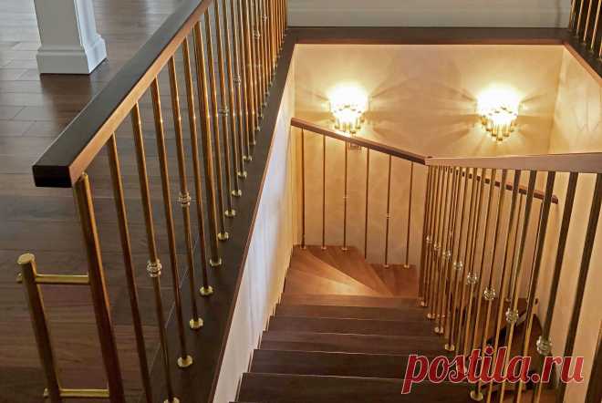 Деревянная лестница с ограждением под золото