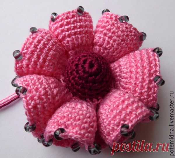Подробный мастер-класс объемного цветка крючком .Шикарный цветок для украшения шляпок,пальто или кардигана.Такой цветок будет великолепно смотреться на ободках для волос и заколках.