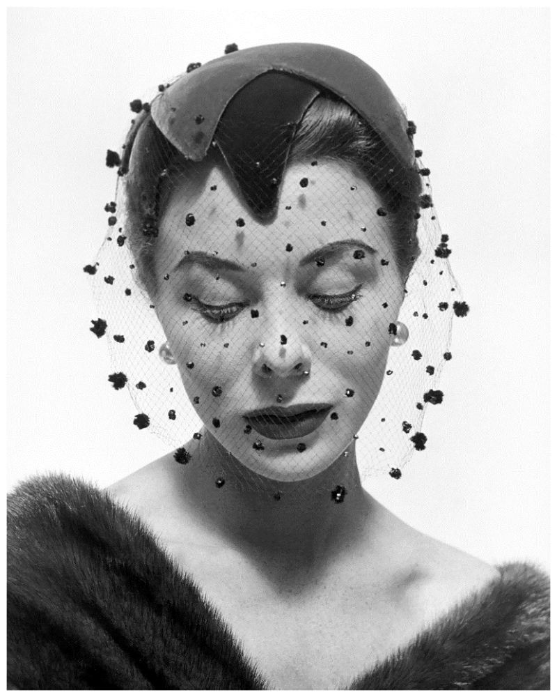 Bettina in Royal Pastel fur stole by Stoll Furs, hat by Svend, photo by Gene Fenn, 1953