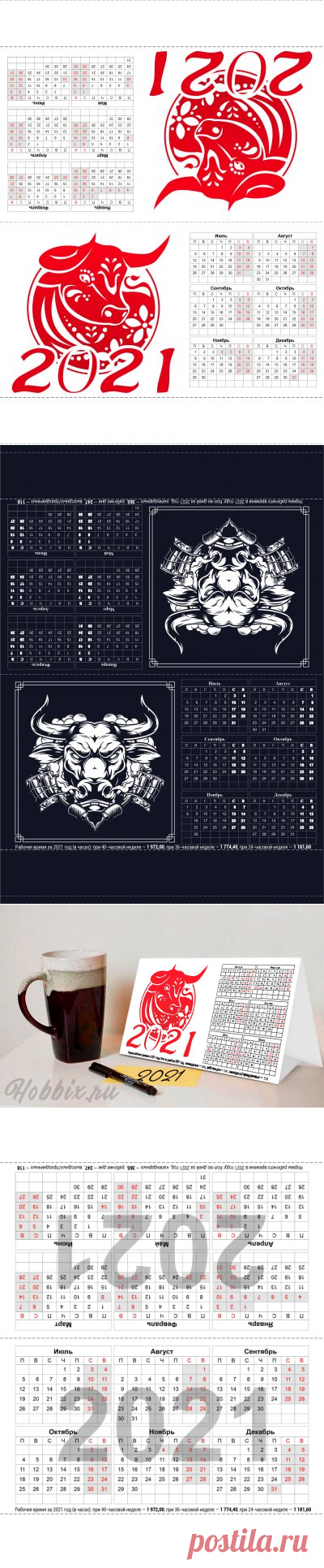Календарь домик на любой вкус - простой, светлый, темный. Маленький настольный календарь с быком на 2021 год. Производственный календарь.
