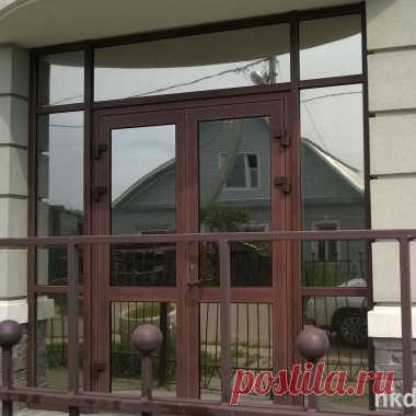 Тонировка зеркальной пленкой входной группы здания.Охранник вас видит - вы его нет