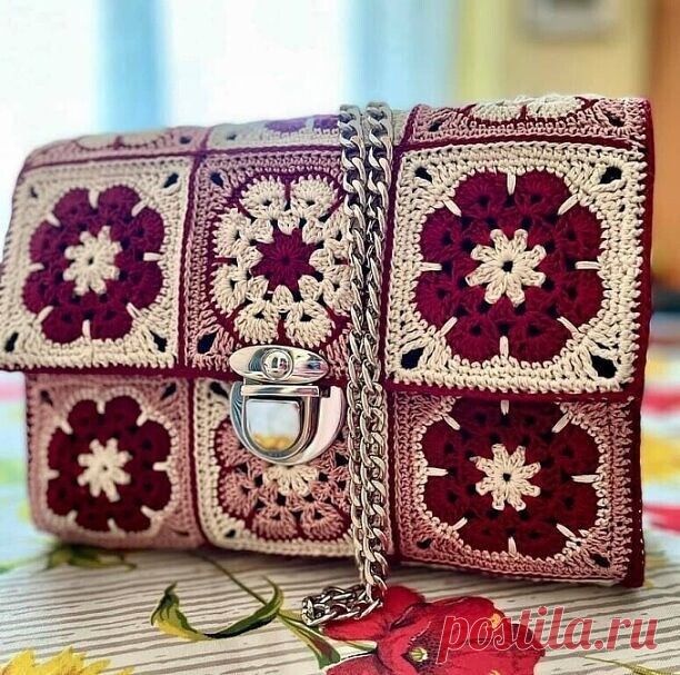 Винтажная вязаная сумка кручком Винтажная вязаная сумка кручкомНебольшая ажурная сумочка в винтажном стиле собрана из треугольных и шестиугольных мотивов, связанных крючком.РАЗМЕРПримерно 35 см в диаметреВАМ ПОТРЕБУЕТСЯПряжа (100% хлопка, 565 м/100 г) 200 г белой; крючок № 1,75. УЗОРЫ И СХЕМЫШЕСТИУГОЛЬНИКВыполнить цепочку из