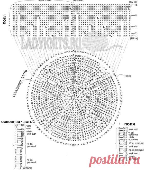 Женская шляпа крючком. Мастер класс и схема. Women's crochet hat