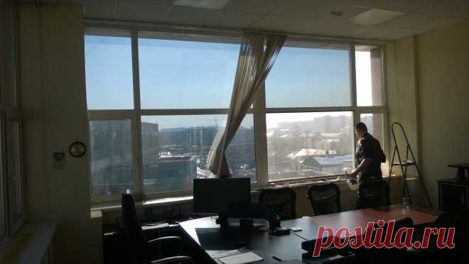 Защитить кабинет руководителя от яркого солнца и тепла - это наша задача .Наклеена 15% спаттерная пленка https://nkdijon.ru/