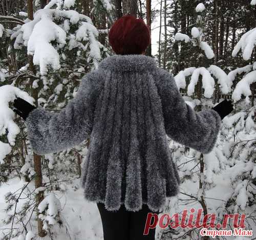 Вязание спицами. Элегантная розовая шубка из "травки"!