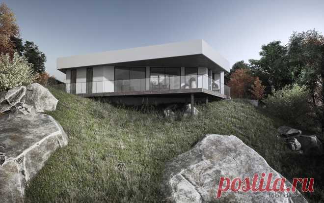 Аскетичные 140 квадратных метров современного дома на каменистом склоне над рекой. Треугольный объем здания был создан в диалоге с клиентом, которому нравятся острые формы, открытая планировка, лаконичность и простота. С нависающей террасы, на которой расположена печь для пиццы и большой стол открывается шикарная панорама реки.