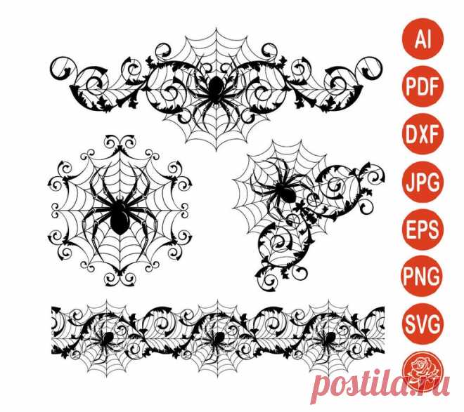 Spider Web SVG Halloween Spider Clipart DXF Border & Corner | Etsy