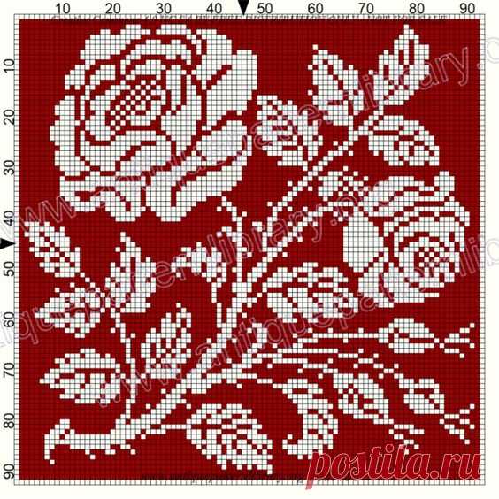 Вязание крючком. Схема большой квадратной салфетки в технике филейного вязания.