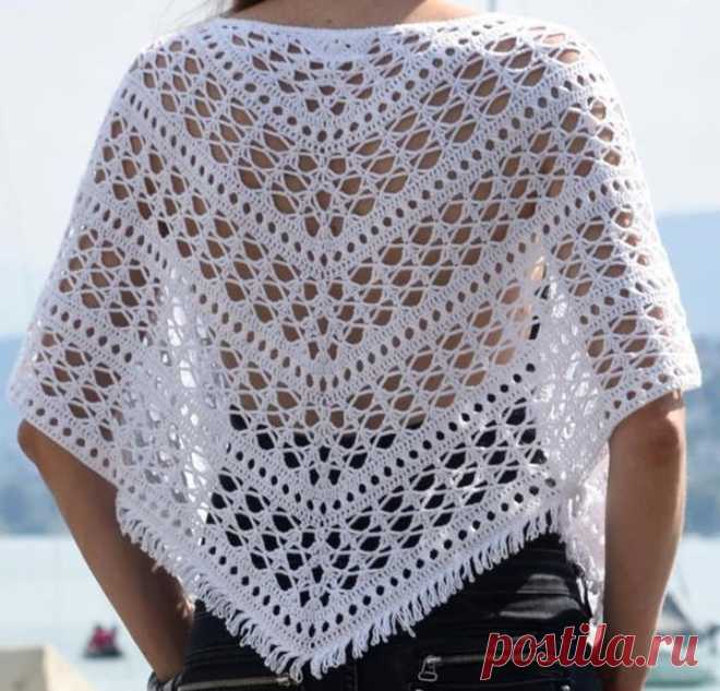 Шаль очень полезная в доме вещь,к тому же красивая.Она вас всегда выручит прохладным вечером,придаст таинственности и укутает своими мягкими и теплыми нитками.Эта модель связана по схеме скатерти дизайнера Герберта Ниблинга .