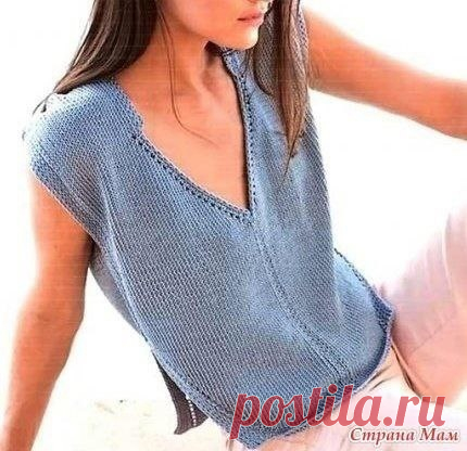 Оригинальный летний топ (Вязание спицами) | Журнал Вдохновение Рукодельницы Оригинальный летний топ (Вязание спицами) Топ, выполненный лицевой гладью, благодаря интересным деталям станет настоящим украшением гардероба. Интересно выполнен вырез горловины и скошенные разрезы по бокам. Размеры: 36/38, 40/42 и 44/46. Вам потребуется: пряжа (100% хлопка, 110м/ 50 г) — 300 (350-400) г серо-голубой; спицы №4. УЗОРЫ Узор из снятых петель: 1-й (изн.) ряд: * 1 […]