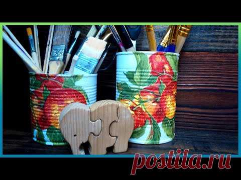 Очень легкий декор банки.Декупаж для начинающих. Декупаж баночки. Организация хранения.