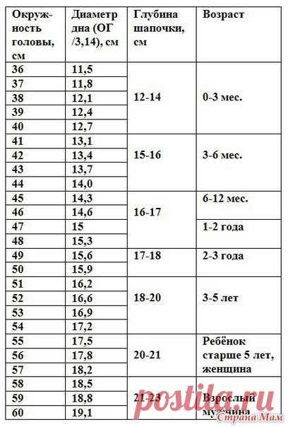 Таблица определения размеров шапочек: фотография в альбоме Схемы и приемы вязания - Страна Мам