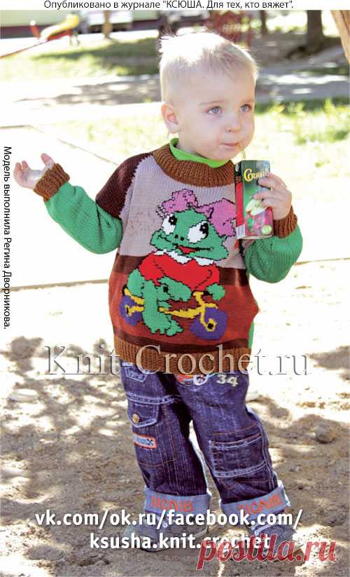 Пуловер-реглан для мальчика (4-5 лет), связанный на спицах.