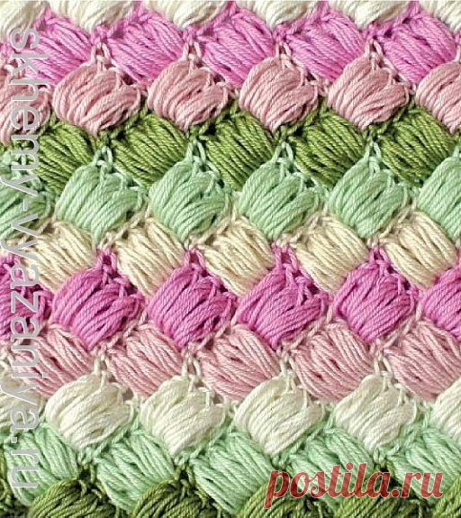 Разноцветная плетенка из пышных столбиков - узор крючком