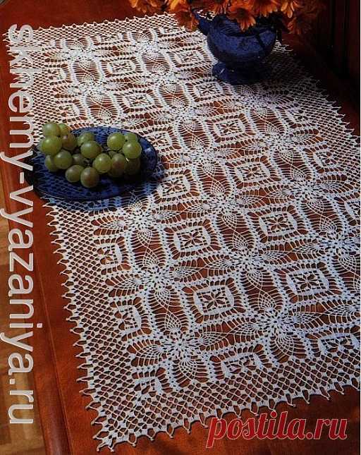 Большая, прямоугольная салфетка на стол Марико: схема вязания крючком