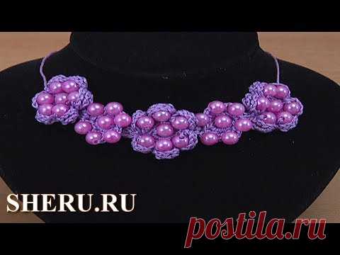 Украшение на шею крючком. Браслет крючком. Урок вязания 148