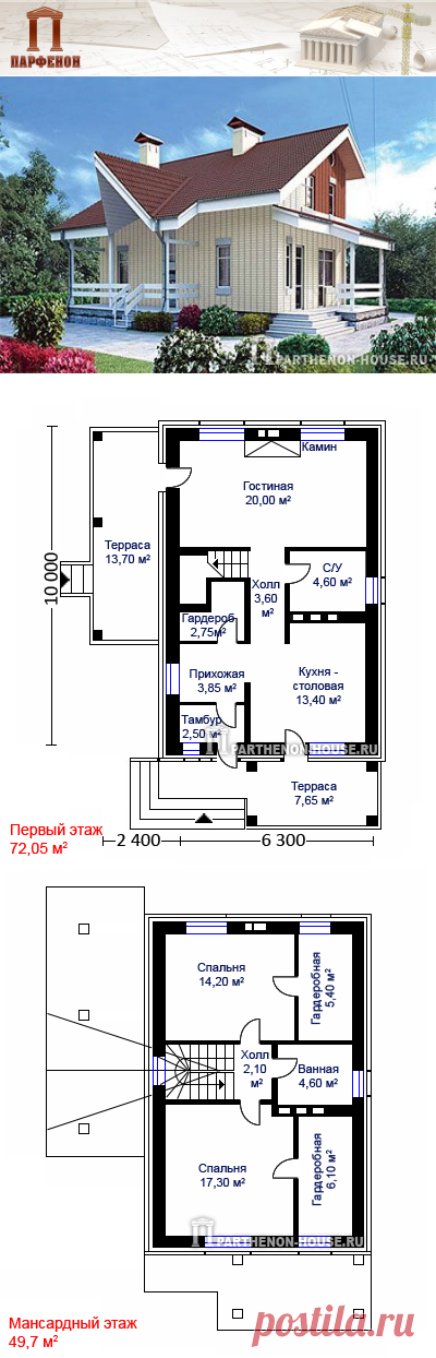 Проект небольшого и рационального дома с мансардой ГБ 84-1