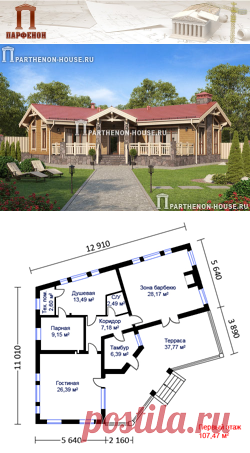 Габаритные размеры бани: 10,920 х 10,920 м.