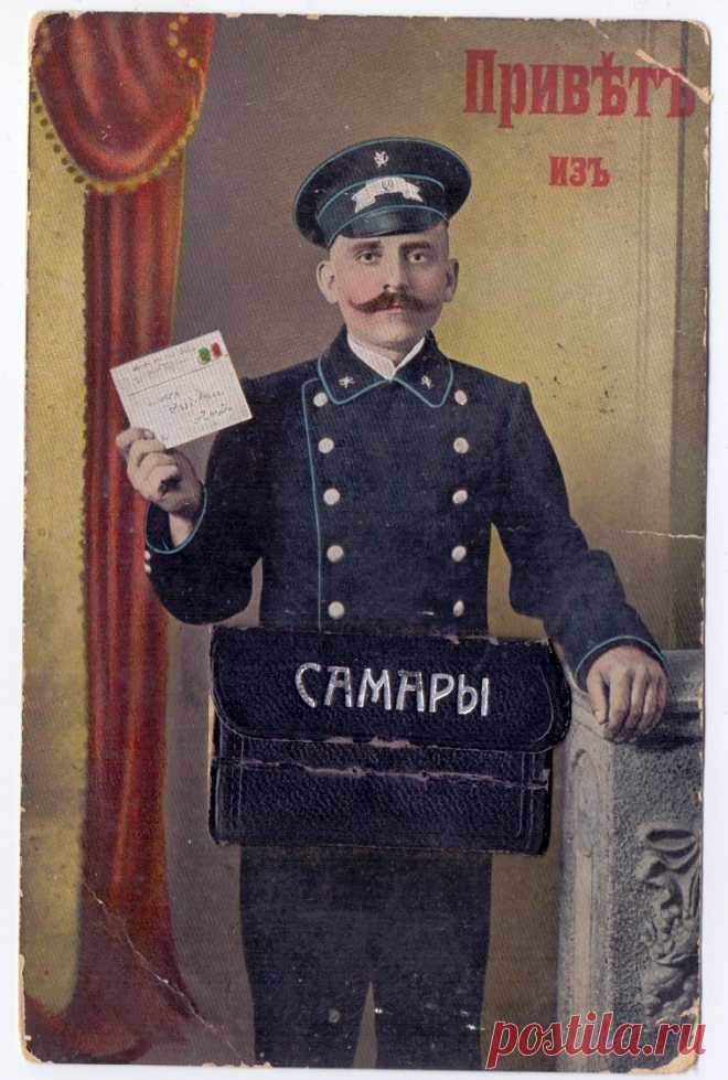 Почтовая карточка Российской Империи - Привет из Самары с кожаным портфелем