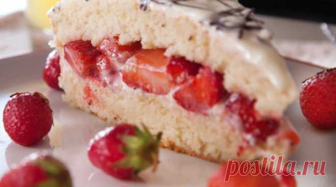 Бисквитно-сметанный торт с клубникой | Рецепт от ВкусноСайт