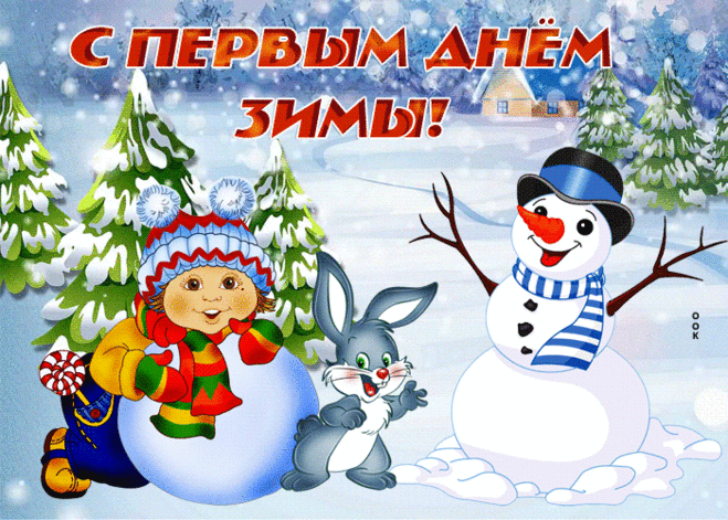Анимационная картинка Первый День Зимы - Скачать бесплатно на otkritkiok.ru