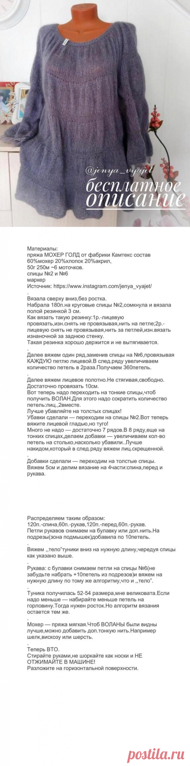 Летний топ (туника) с ажурными дорожками (Вязание спицами) – Журнал Вдохновение Рукодельницы
