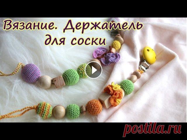 Вязание для новорожденных. Держатель для соски своими руками: видео урок Приветствую вас, мои дорогие рукодельницы. В этом видео уроке я покажу вам как можно самим создать, а точнее обвязать бусины хлопковой пряжей и после ...