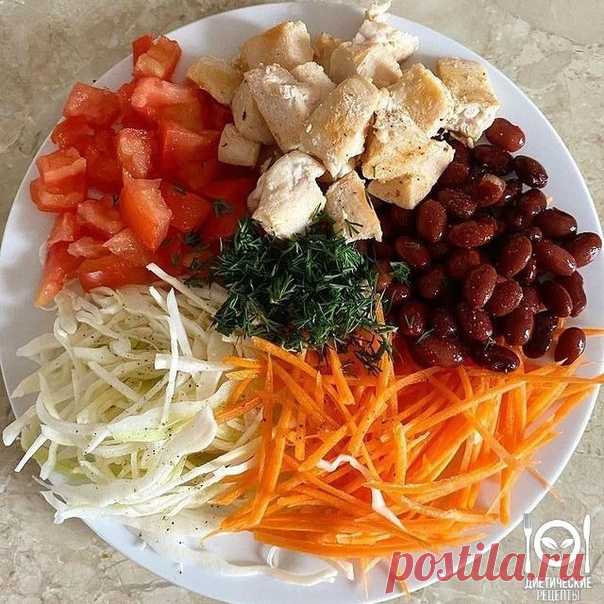Хочу поделиться с вами рецептом вкусного салата на пп ужин!