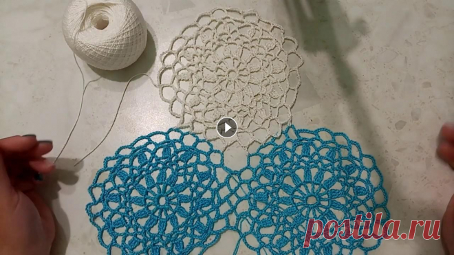 Мотив крючком. Скатерть из мотивов. Сrochet motif. Tablecloth motifs Также можете посмотреть как вязать красивый шнурок:...