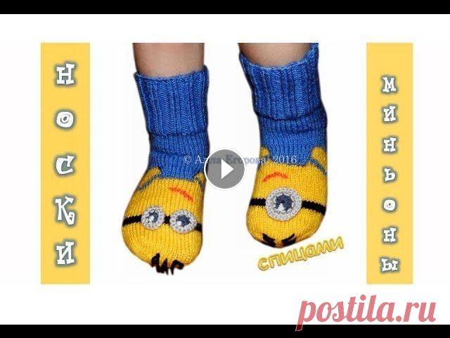 Носки "Миньоны" связаны спицами. Носочки связаны спицами. Размер на 2-3 годика. Ваш ребенок будет с удовольствием носить яркие, теплые носочки в виде любимых мульт героев. Ссылка на в...
