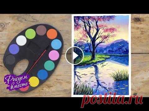 Как нарисовать ЦВЕТУЩЕЕ ДЕРЕВО за 10 минут гуашью ОЧЕНЬ ПРОСТО. Урок рисования. Рисуем цветущее дерево гуашью для начинающих очень просто и быстро. Подборка уроков рисования "Пейзажи"...