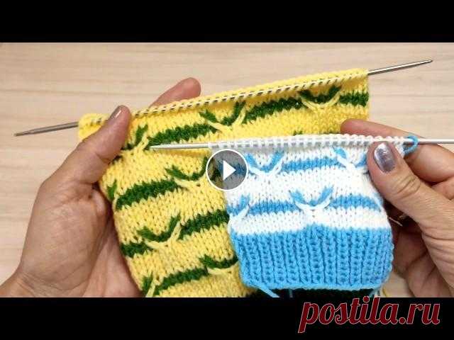 Двухцветный ленивый жаккард. Вязание спицами. Очень красивый узор для вязания детских изделий, главное правильно выбрать сочетание цветов. Такой узор украсит любое изделие которое вы захотите связ...