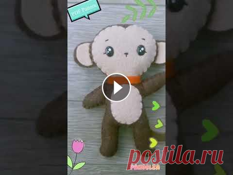 Monkey felt plushie toy doll pattern. DIY stuffed jungle animal for baby nursery room. Easy sewing. Monkey felt Craft. Hand sewing doll pattern with tutorial. DIY cute toy gift for kid. Cute decorations ornaments...